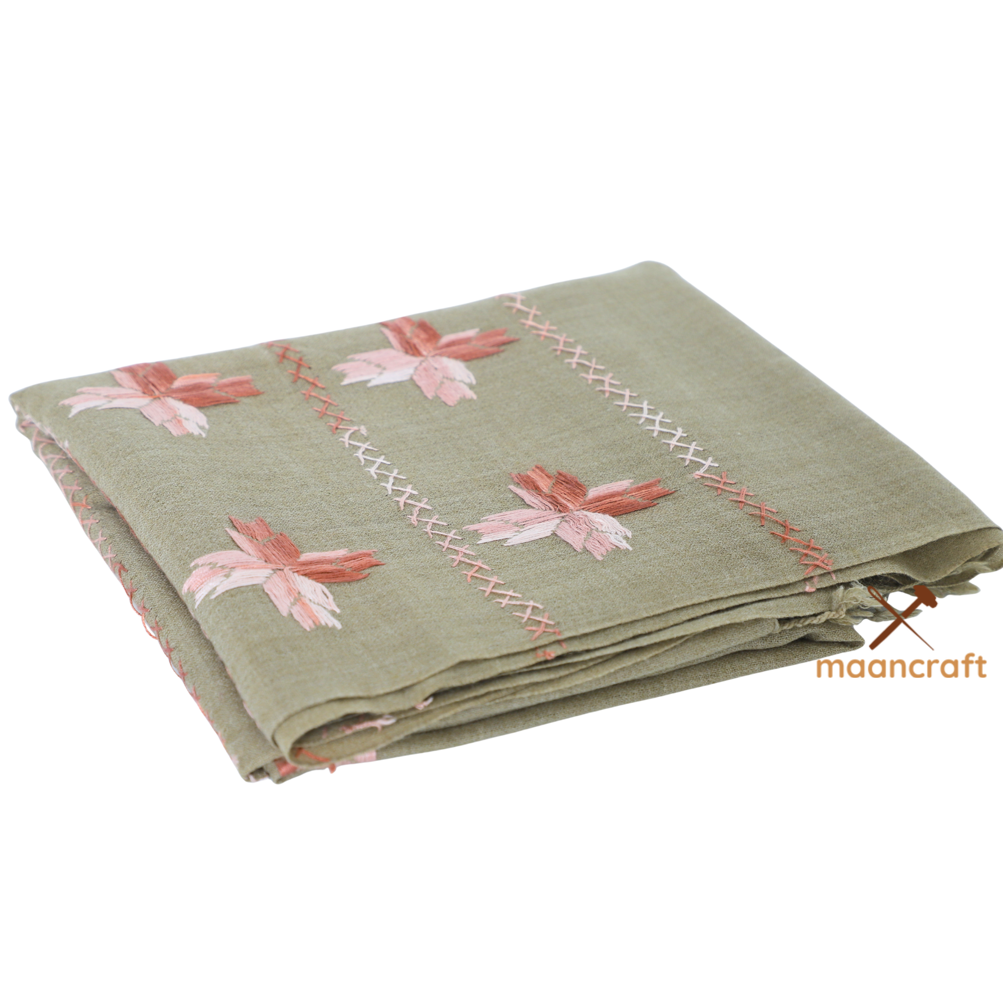 Swati shawl - Pistachio with hand embroidery
